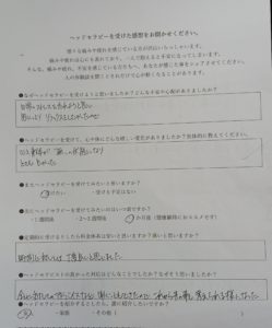 日々、生活していると ゆっくりする時間って なかなか取れないですよね。 自分に優しく… と昨日のブログでもお伝えしていますが 自分で意識的にならないと なかなか時間は作れません。 先日いらして下さったお客様のお声、 まさしく自分に優しく! 行動されているなぁ…と感じました。 今日もゆる~く楽にいきましょー♪ ヘッドセラピーのご感想 ↓